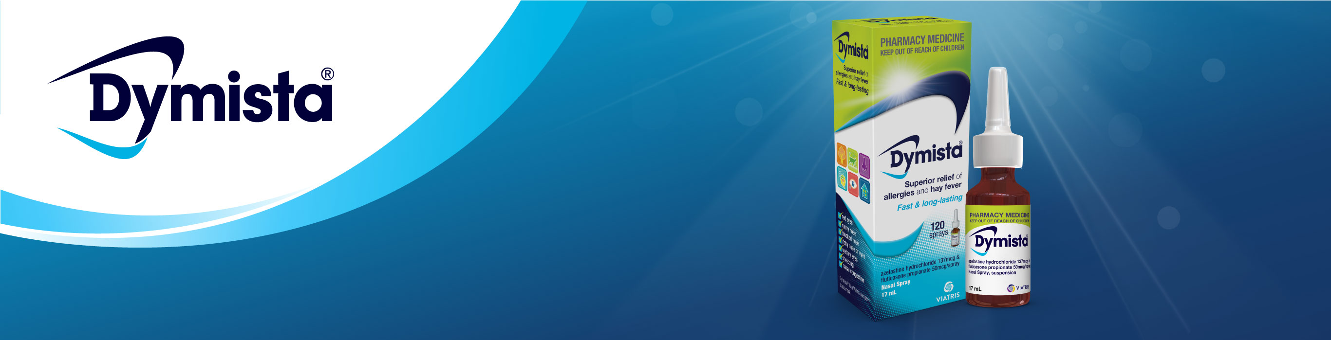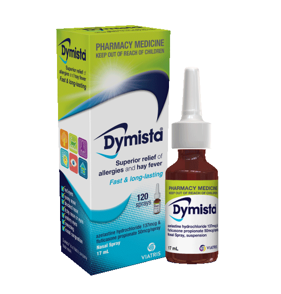 Direct dual-action anti-allergic and anti-inflammatory treatment of moderate to severe nasal symptoms from hay fever, dust, pet and mould allergies. Dymista® provides rapid symptom relief for: